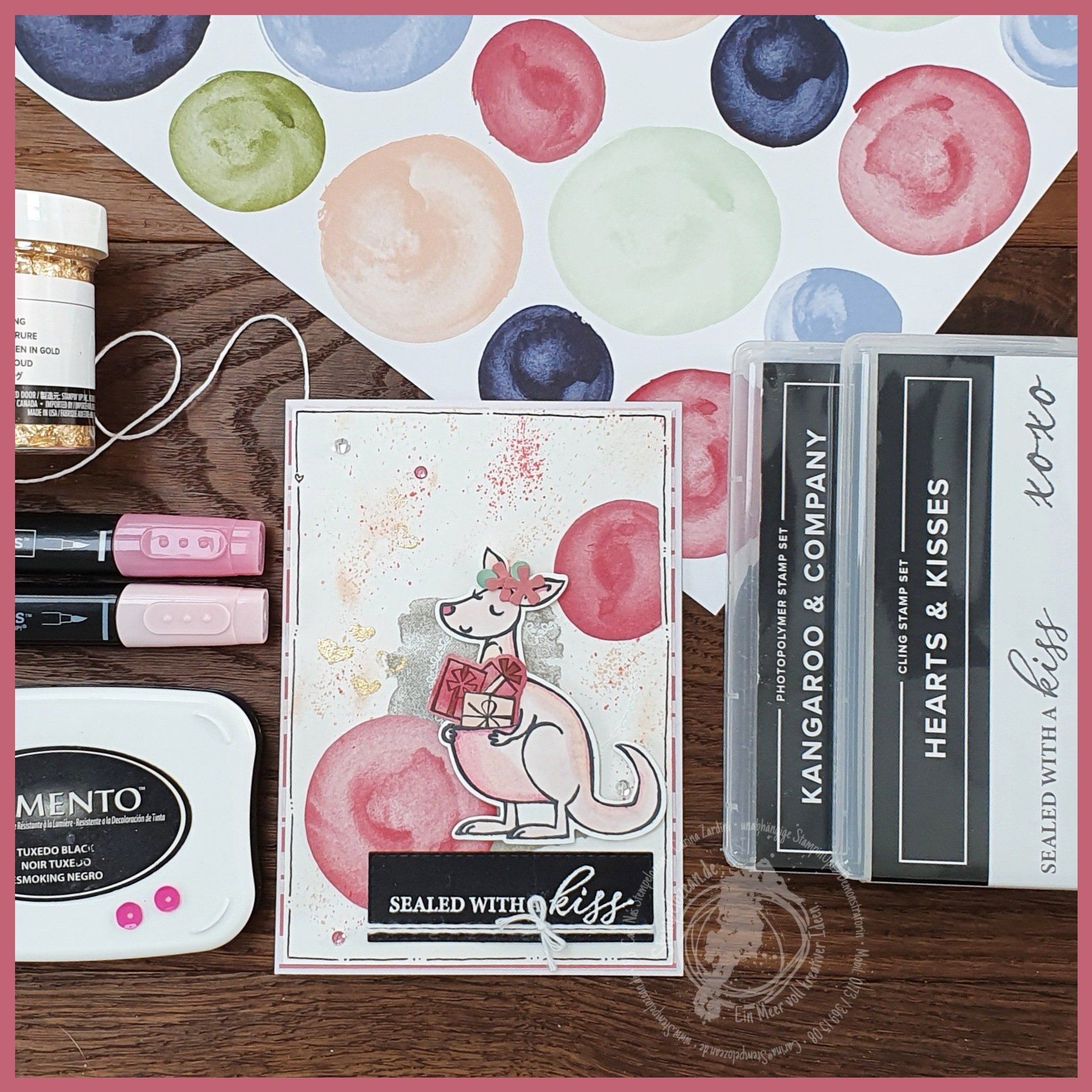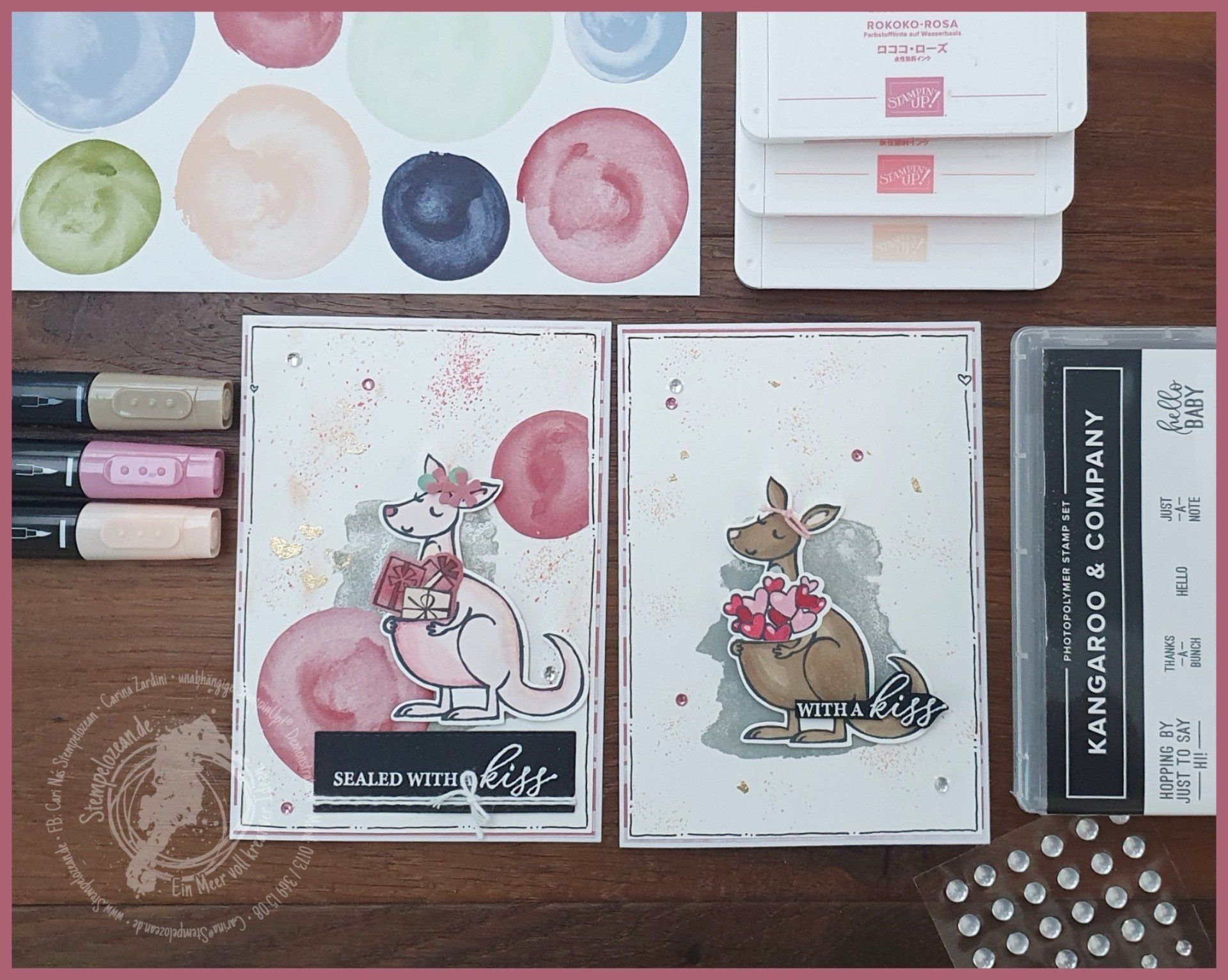 Ich muss zugeben, anfangs hatte ich auch "nur" Babykarten und Geburtstage im Kopf bei diesem Set. Aber je mehr ich darüber nachdenke, desdo mehr Gelegenheiten schwirren mir durch den Kopf ;) Sie wird sicher, wie es sich für ein Känguru gehört, noch öfter von meinem Tisch hüpfen.