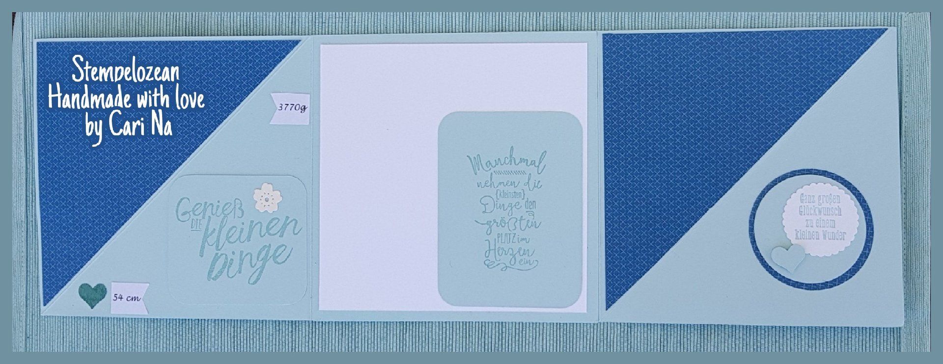 Eine "Triangel Tri-Fold-Card" in verschiedenen Blautönen