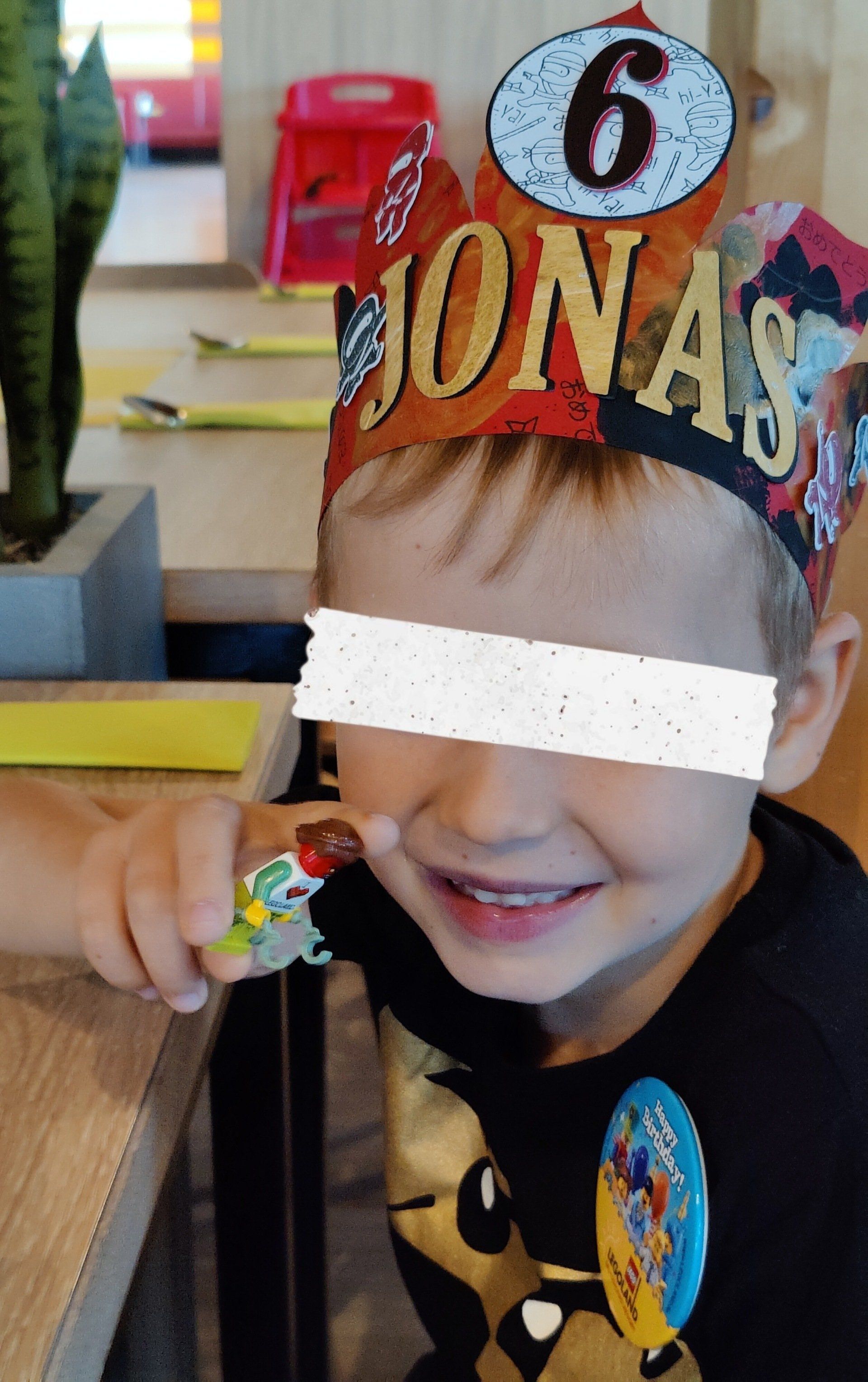 Jonas durfte am Geburtstagsmorgen zur Rezeption und sich einen Geburtstagsbutton + kleinem Geschenk abholen.