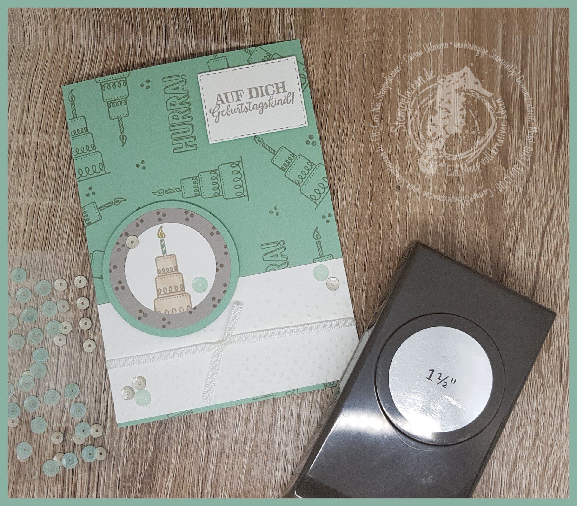 Geburtstagsgruß in Minzmakrone/Flüsterweiss mit Granit-Akzenten