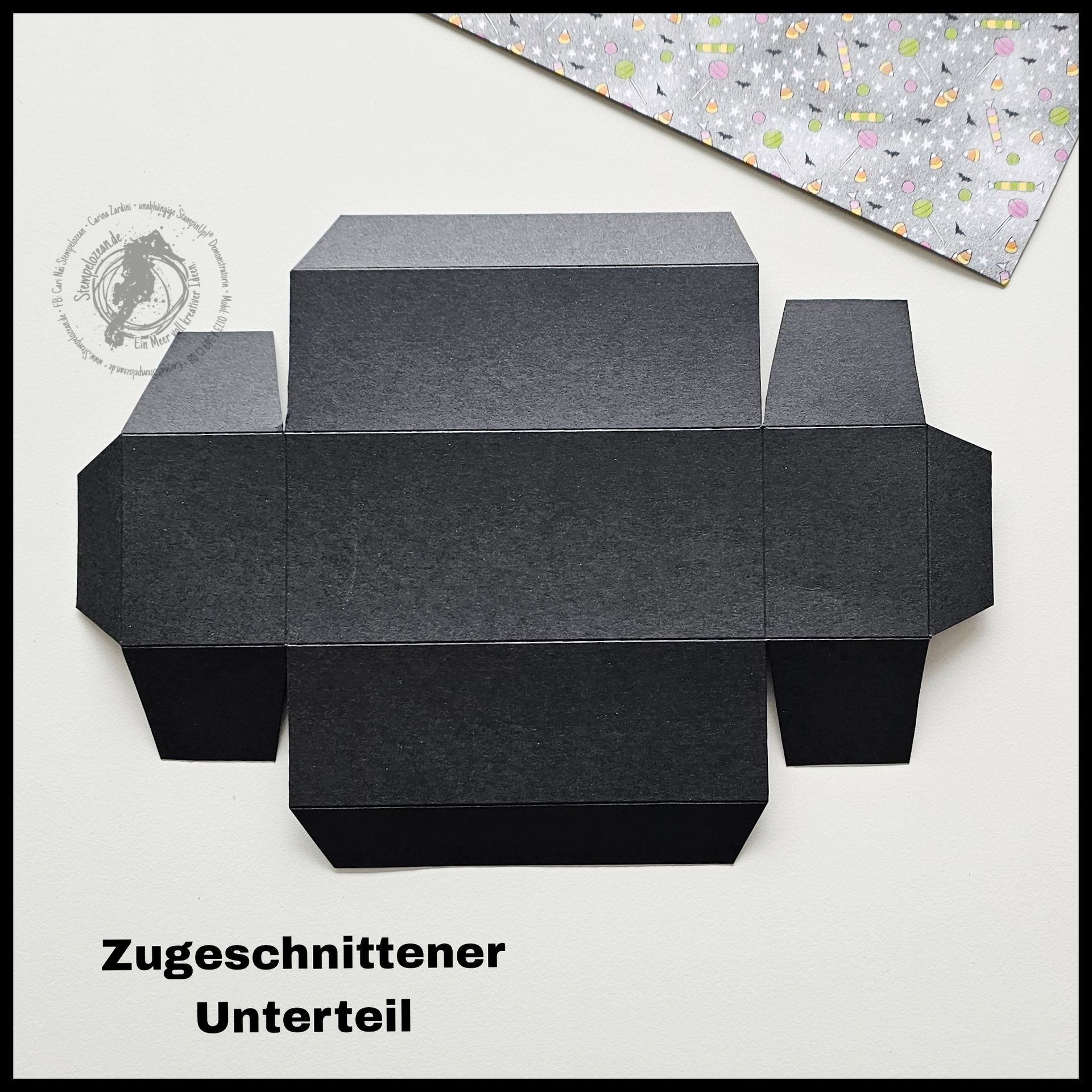 Das Dekorieren ist ja dann Euch überlassen. Gesche hat eine sommerliche "Eis-Schachtel" draus gemacht. Und ich eben die "süsse, schwarze Candy - Version"
