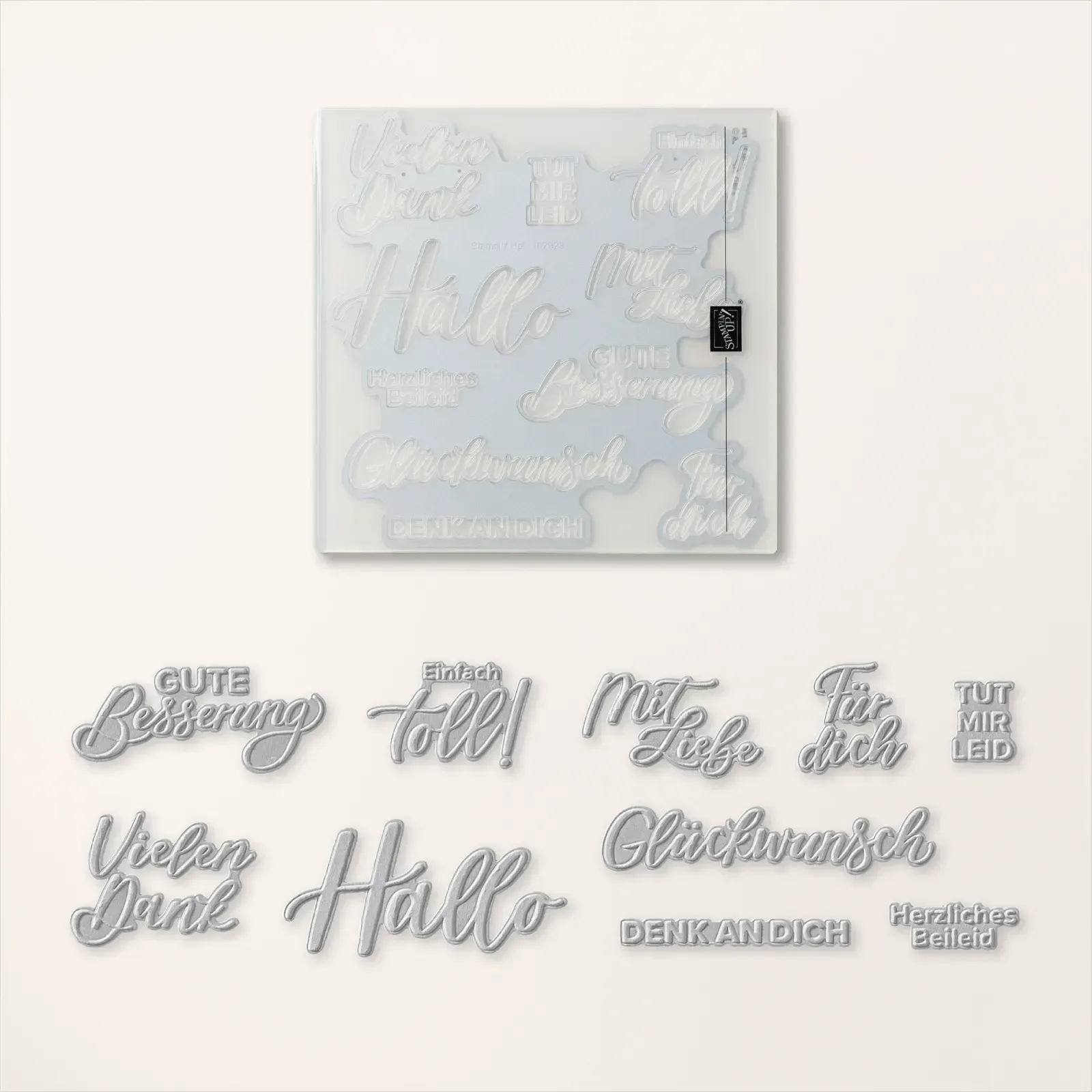 Kombiniert hab ich das ganze mit der Hybrid-Prägeform "Aufmerksame Worte" (162929). Die sind so schööön!