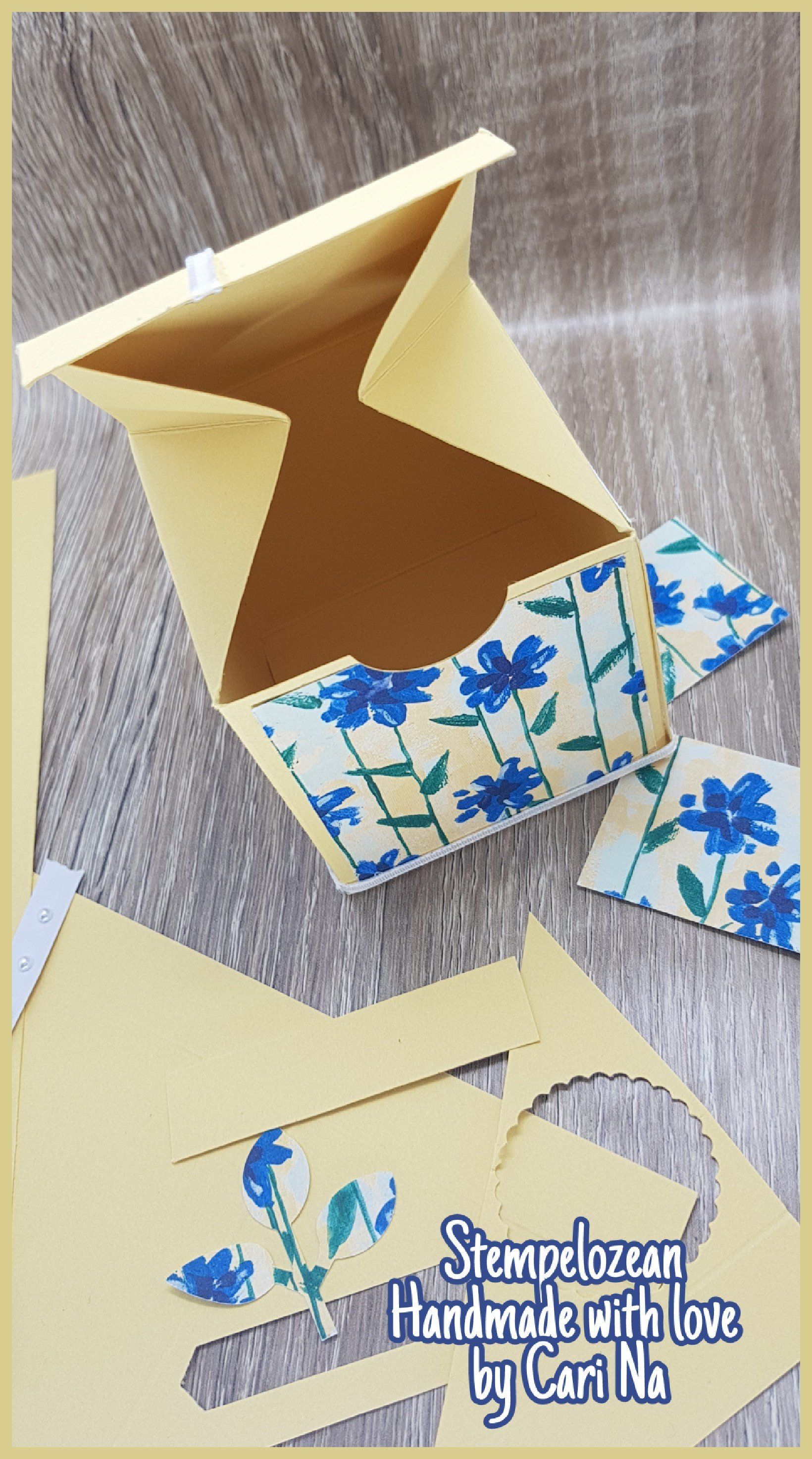 Herzlich Willkommen zum September Insta-Hop der MagInk-Friends! Heute habe ich ein Projekt für euch, da muss ich zugeben, dass hat mich ganz schön an meine Grenzen gebracht. Nicht, weil es besonders kompliziert oder aufwendig war, sondern weil ich die Finger von meinem geliebten Tombow bzw. Abreissklebeband lassen musste. Denn der Wunsch unserer lieben Maria ist das Thema : "Projekt ohne Kleber" Nach laaaaangem Hin und Her hab ich mich dann für eine kleine quadratische Schachtel entschieden - ganz ohne Klebemittel, nur mit falten und stecken.