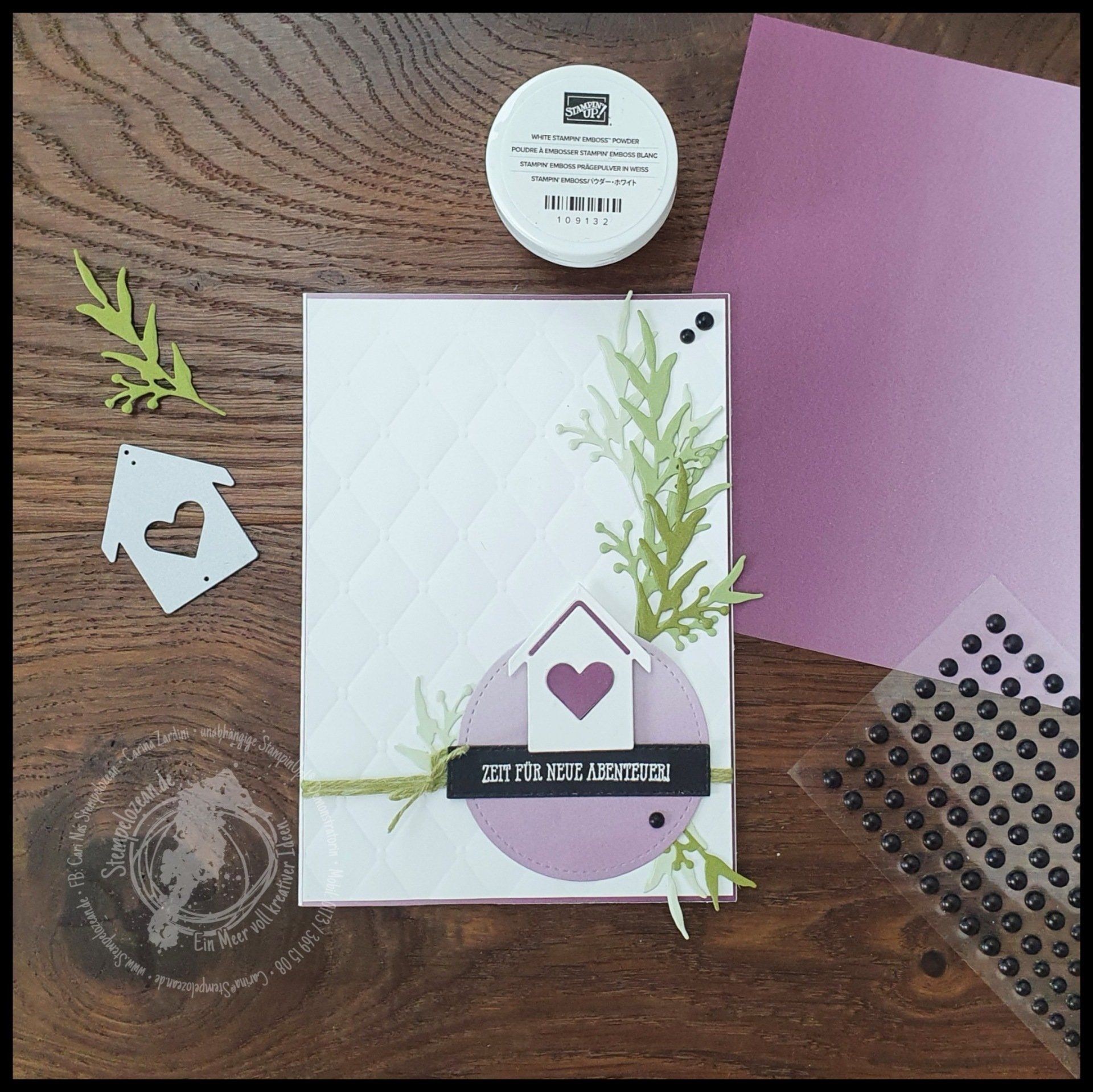 Beim Thema Neuanfang wegen eines Umzugs kam das Häuschen aus dem Stanzformen-Set "Unser Zuhause" mit dem neuen Ombre-Papier aus der momentan, noch bis zum 28.2. laufenden, SAB-Prämien-Aktion zum Einsatz.