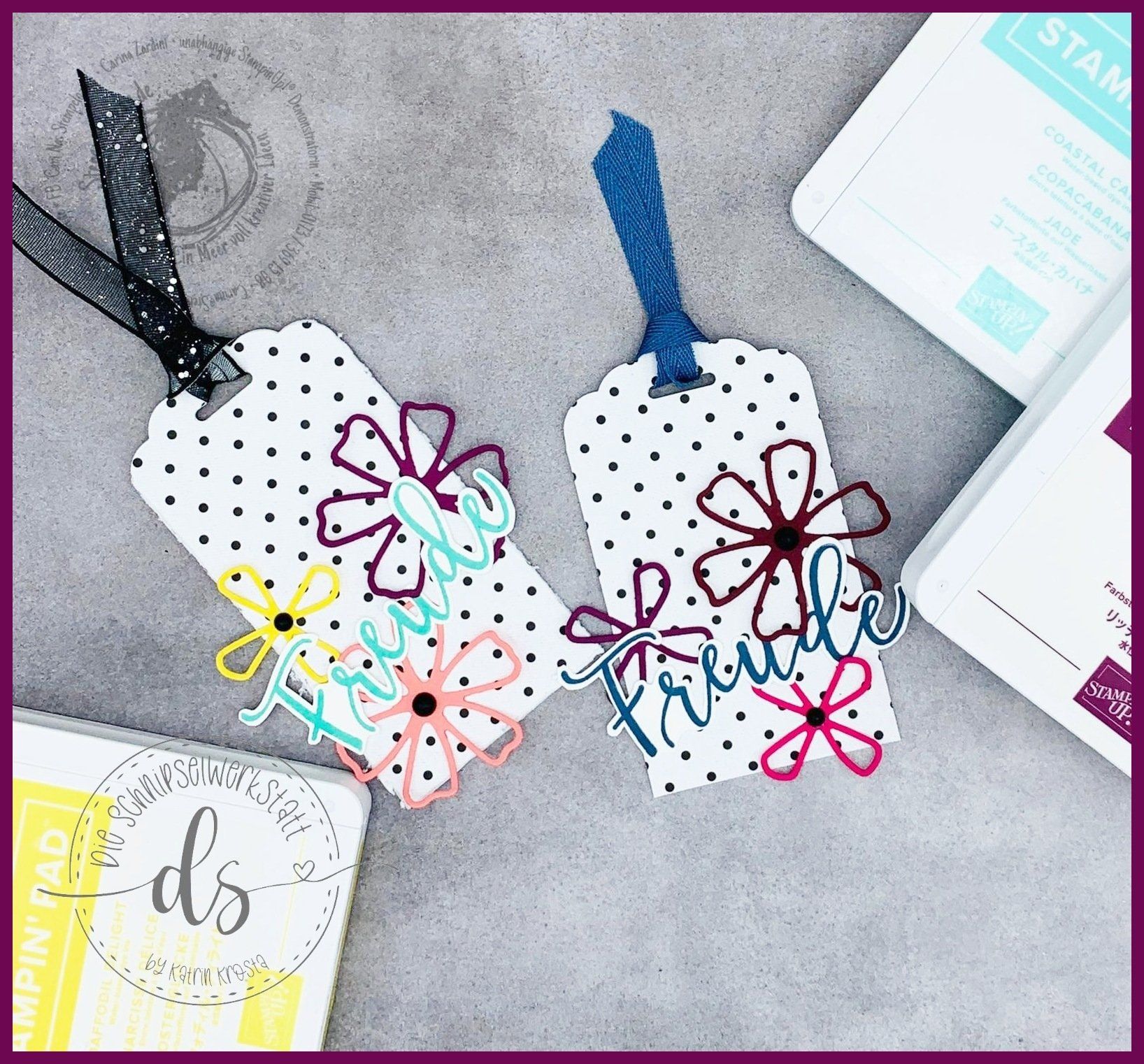4. 2 Geschenkanhänger, die alle mit „Blumen voller Freude“ entstanden sind.