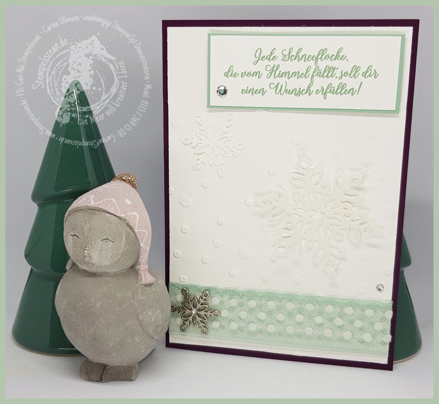 Was vielleicht nicht so gut auf den Foto´s erkennbar ist, dass die größere der beiden Schneeflocken eine Pergamentschicht bekommen hat. Diese habe ich auch nur mittig befestigt, damit die Schneeflocke noch etwas plastischer auf der Karte wirkt. Deshalb auch der Pergament - Farbkarton in der Auflistung.